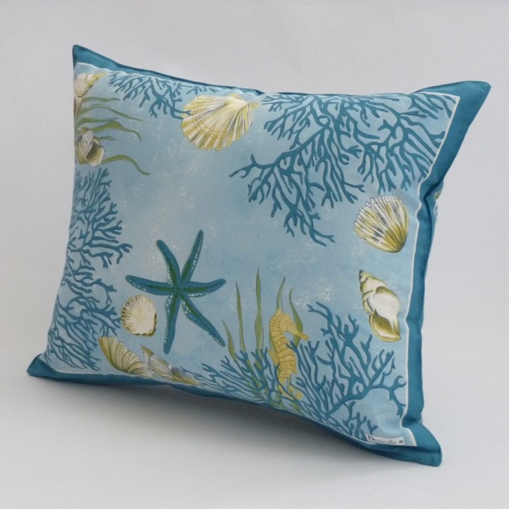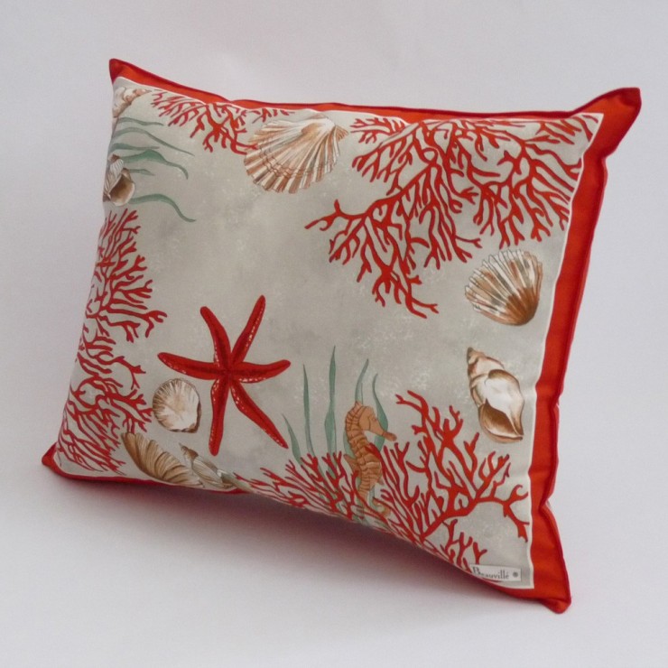 Das vom Meer inspirierte Kissenhülle Corail zeigt eine Meereslandschaft mit vielen Details und Mustern. Korallen und Muscheln sind auf diesem Kissenhülle subtil gezeichnet und verleihen Ihrem Zuhause ein Urlaubsgefühl.