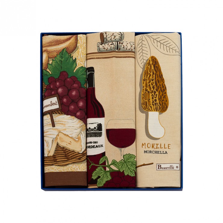 Diese großzügige Geschenkpackung enthält „Fromages“, „Champignons“ und „Millésime“. Drei emblematische Geschirrtücher, die von unserer Liebe zu authentischen Produkten und geselligen Tischen erzählen.
