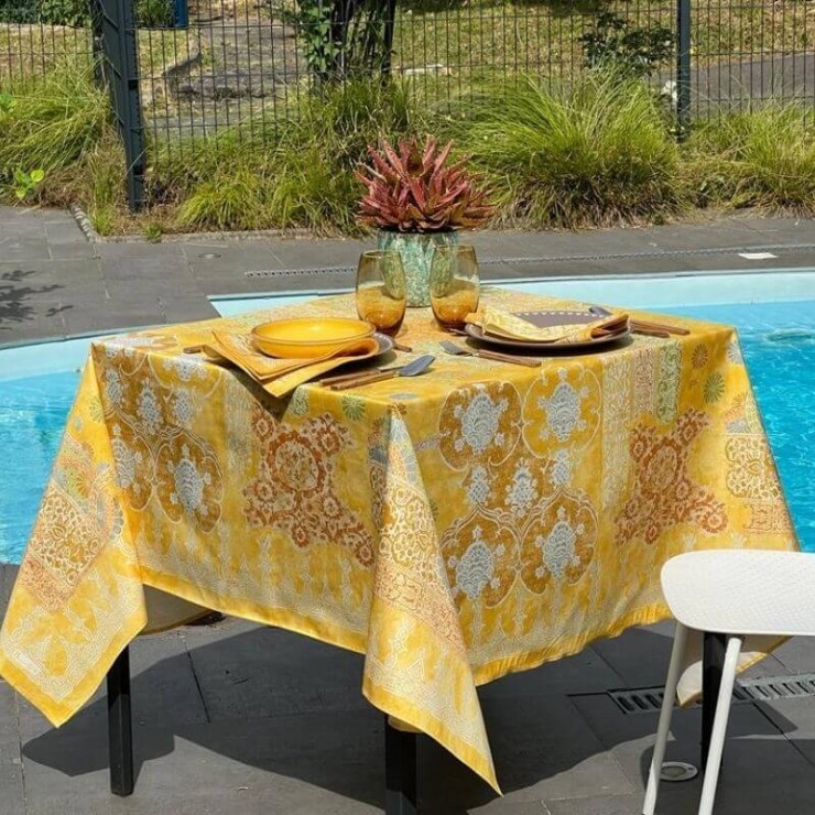 Die Igor Tischdecke, eine Rückkehr in die Zeit Überqueren Sie die Zeit und finden Sie sich am Tisch des Königs mit dem Igor-Tischtuch wieder. Die Muster dieser schönen Tischdecke sind einem Dokument aus der Zeit Napoleons III. entnommen und symbolisieren den Pomp der kaiserlichen Diners der französischen Monarchie. Dieses Produkt wird 100% in Frankreich...
