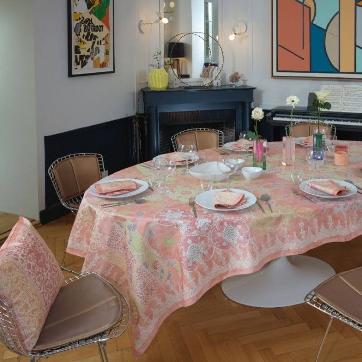 Die Tischdecke Topkapi, ein Muss für Beauvillé Zwischen Istanbul und Nantes ist das Topkapi-Modell als eine Reise durch die Textilgeschichte konzipiert. dieses Produkt kann nach Maß gefertigt werden : Entdecken Sie hier das gesamte Sortiment Dieses Produkt wird 100% in Frankreich hergestellt