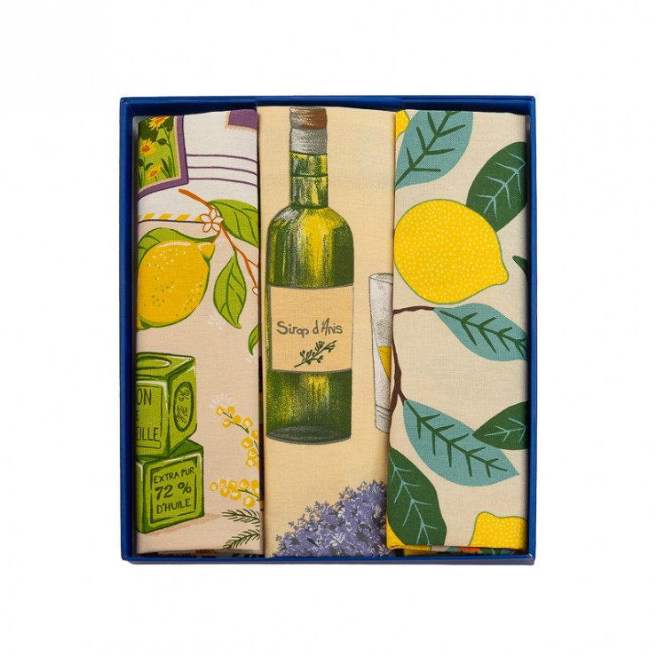 Schenken Sie eine kulinarische Reise mit dem Geschenkset Aromen des Südens. Dieses elegante Set enthält drei Handtücher: Provence, Saint Paul und Zitronen. Ideal, um Ihrer Küche einen mediterranen Touch zu verleihen, kombiniert es Praktikabilität und Ästhetik für den Alltag.