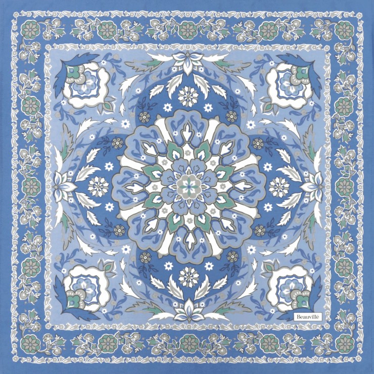 Die Trianon-Serviette, eine großartige Komposition Die Trianon-Serviette ist vom Anwesen in Versailles inspiriert und bietet Ihnen eine prächtige Komposition voller Ornamente: Indigoblaue Akanthusblätter und Wurmhölzer sind auf dieser prächtigen Trianon-Serviette gezeichnet. Dieses Produkt wird 100% in Frankreich hergestellt