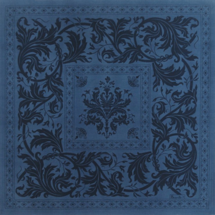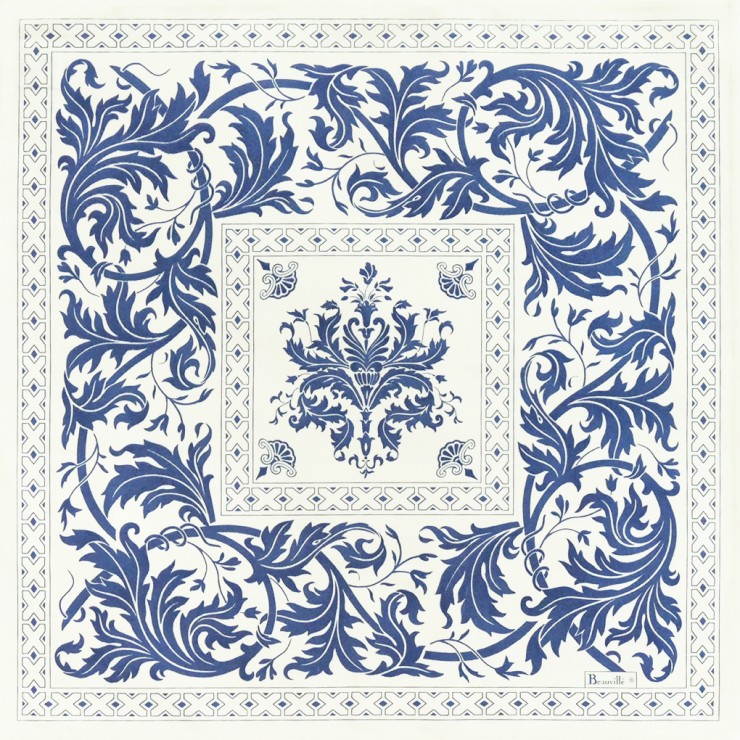 Die Trianon-Serviette, eine großartige Komposition Die Trianon-Serviette ist vom Anwesen in Versailles inspiriert und bietet Ihnen eine prächtige Komposition voller Ornamente: Indigoblaue Akanthusblätter und Wurmhölzer sind auf dieser prächtigen Trianon-Serviette gezeichnet. Dieses Produkt wird 100% in Frankreich hergestellt