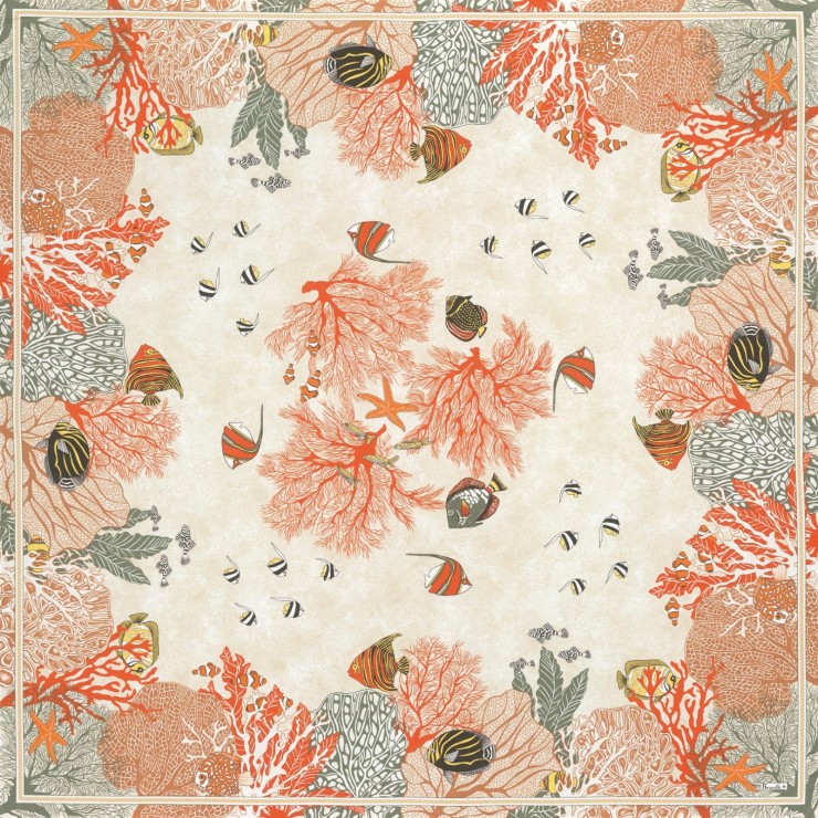 Die Beschichtete Tischdecke Porquerolles, ein maritimes Dekor Tauchen Sie mit der Tischdecke Porquerolles und ihrem reichhaltigen maritimen Dekor in die Tiefen des Meeres ein. Diese beschichtete Tischdecke ist ideal für den Innen- und Außenbereich und zeigt ihre prächtigen Details in Korallentönen. Dieses Produkt wird 100% in Frankreich hergestellt