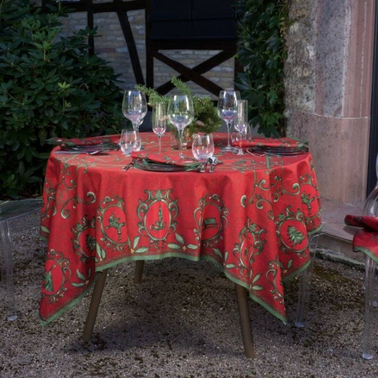 Sinnbildlich für den Winter und die Feierlichkeiten zum Jahresende, unterstreicht die Tischdecke Winter mit Brillanz den Geist der Geselligkeit. Die Stechpalmenblätter und ihr rot-grünes Duo symbolisieren perfekt die ganze Feiertagstradition.