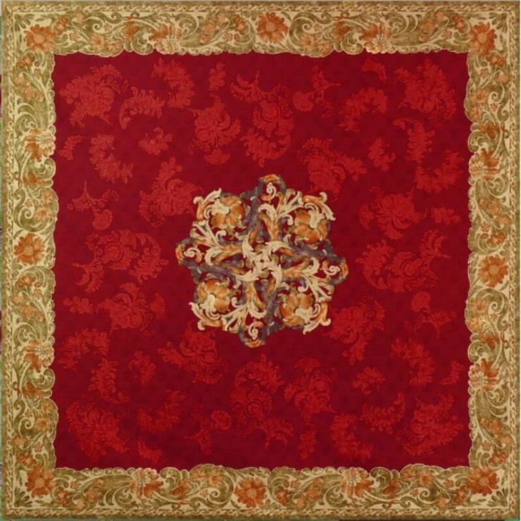 Entdecken Sie die berühmte Ponte Vecchio, das Mekka der italienischen Schmuck- und Goldschmiedekunst, mit dieser luxuriösen Tischdecke. Der venezianische Prunk wird durch ein Design mit kostbarer Vergoldung elegant dargestellt und durch ein extravagantes Rot intensiviert.
