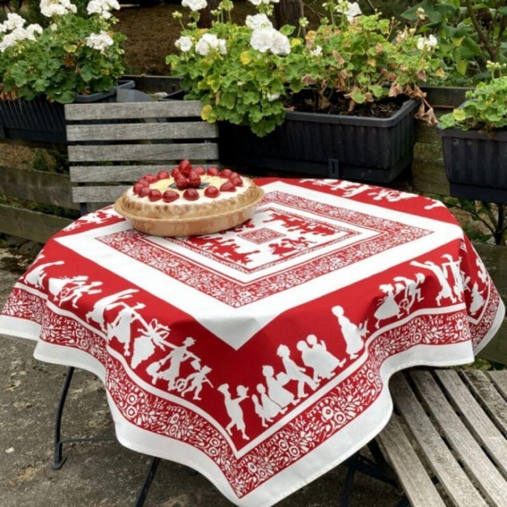 Die Tischdecke Silhouettes Hansi illustriert typische elsässische Szenen des Lebens und spielt mit Schatten und Kontrasten. Diese hübsche Tischdecke auf rotem oder grauem Hintergrund ist eine Hommage an regionale Traditionen.