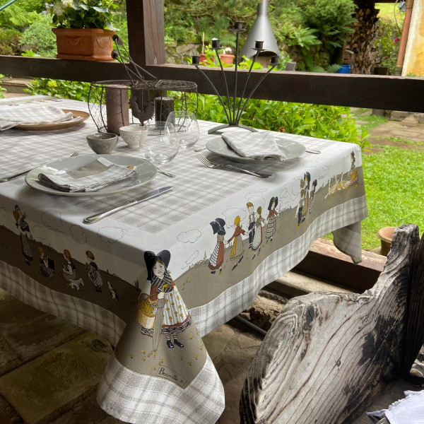 Das Mon Village Tischdecke, ein regionales Ausflugsziel Gönnen Sie sich eine Reise ins Elsass mit der Tischdecke Mon Village: Voller typischer Details und regionaler Souvenirs kleiden traditionelle Szenen des Lebens und Kostüme der Figuren diese Tischdecke fröhlich in die Farben des elsässischen Lebens. Dieses Produkt wird 100% in Frankreich hergestellt