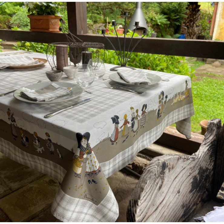 Die Tischdecke École Buissonnière, eine Rückkehr zur Kindheit Die Tischdecke Ecole Buissonnière erinnert an die traditionelle Teeparty in der Kindheit und weckt Erinnerungen an die Rückkehr aus der Schule, die mit wohlverdienten Leckereien gefüllt ist. Dieses Produkt wird 100% in Frankreich hergestellt