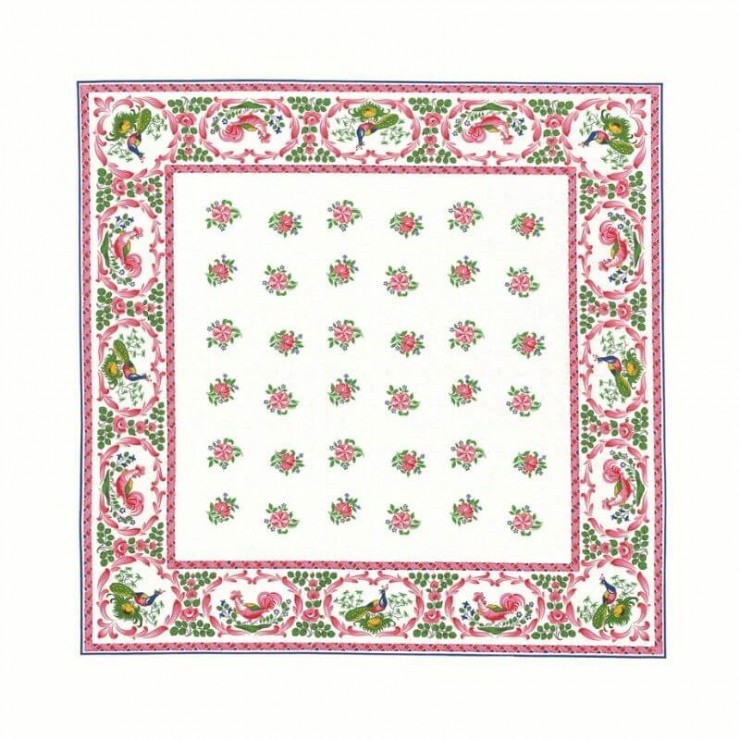 Der Jugendstil lädt mit der Tischdecke Les Coqs auf den Tisch ein: Hübsche Details in Rosa- oder Blautönen zieren diese weiche Tischdecke. Bringen Sie Eleganz und Weichheit in Ihre Inneneinrichtung mit dieser wunderschönen Tischdecke aus dem Elsass.