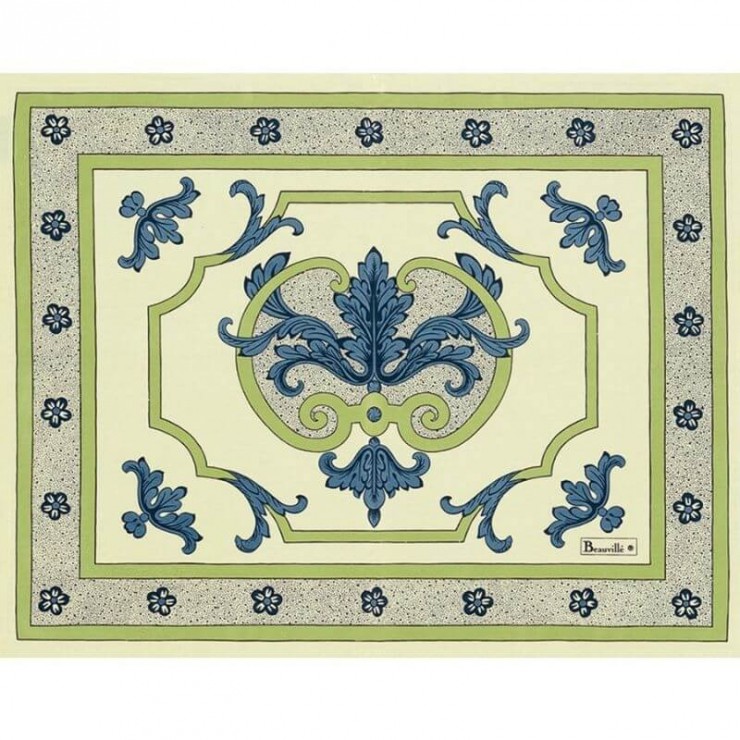 Schöne Absinth-Arabesken und zarte indigoblaue Akanthusblätter auf elfenbeinfarbenem Hintergrund zieren das Tischset Trianon. Das Tischset Trianon zaubert ein dem Château de Versailles würdiges Bild an Ihren Tisch.