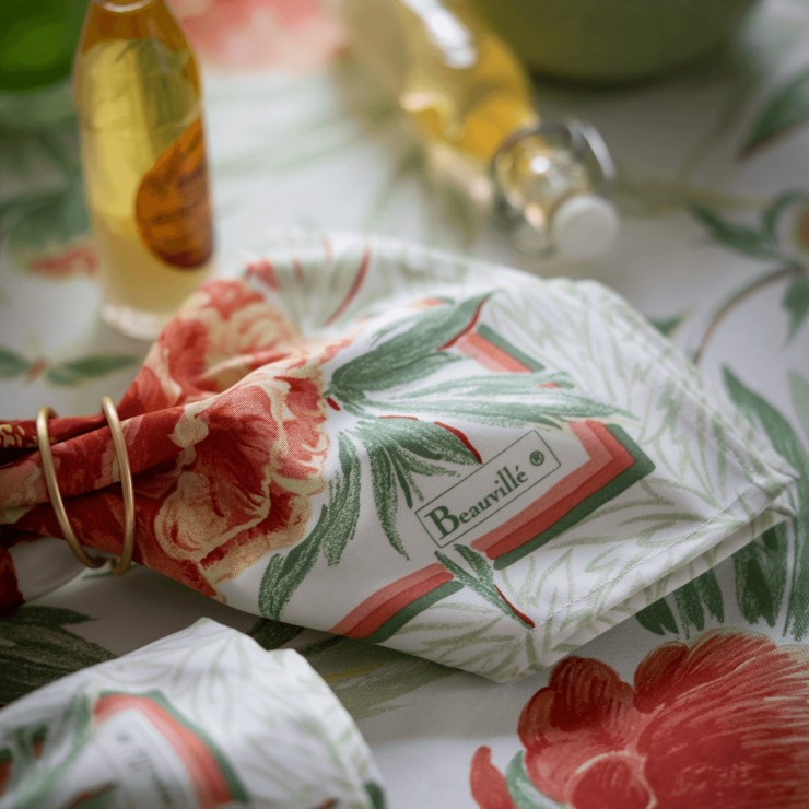 Palais Royal, ein farbenfrohes beschichtete Platzdeckchen Das beschichtete Tischset Palais Royal bietet ein einzigartiges florales Tableau: Inspiriert von den Spaziergängen der Königin Katharina von Medici, besteht es aus blühenden Magnolien, die zart von einem Libellenballett umgeben sind. Dieses Produkt wird 100% in Frankreich hergestellt