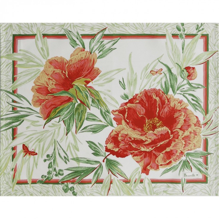 Ein Strauß Pfingstrosen schmückt elegant dieses farbenfrohe Tischset. Frisch gepflückt, erinnern die sonnenüberfluteten Blumen an impressionistische Gemälde des 19. Mit seinen frühlingshaften Farben bringt das Tischset Les Pivoines Weichheit und Fröhlichkeit auf Ihren Tisch.