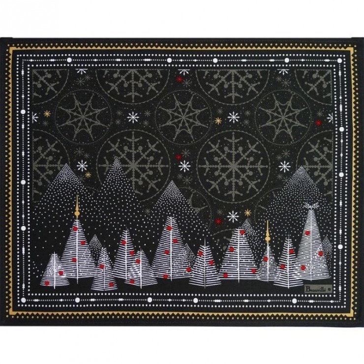 Das Tischset Balade en hiver die Schönheit der Wintertraditionen Mit seinem eindrucksvollen Motiv nimmt Sie das Tischset Balade en hiver mit in eine zauberhafte Winterlandschaft. Bieten Sie Ihren Gästen bei jeder Mahlzeit das Gefühl eines Spaziergangs durch einen verschneiten Wald. Dieses Produkt wird 100% in Frankreich hergestellt