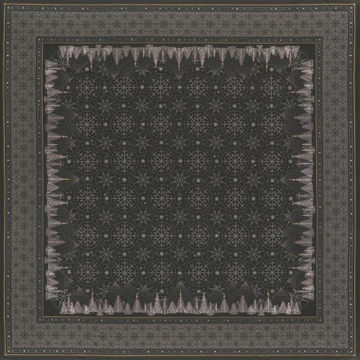 Der ganze Zauber des Megève-Tischtuches wird unter dem sanft fallenden Schnee der Nacht interpretiert. Diese hübsche weihnachtliche Tischdecke in den drei Farben Anthrazit, Raureif und Rot ist mit zarten und eleganten Winterdetails verziert und passt perfekt zur festlichen Jahreszeit.