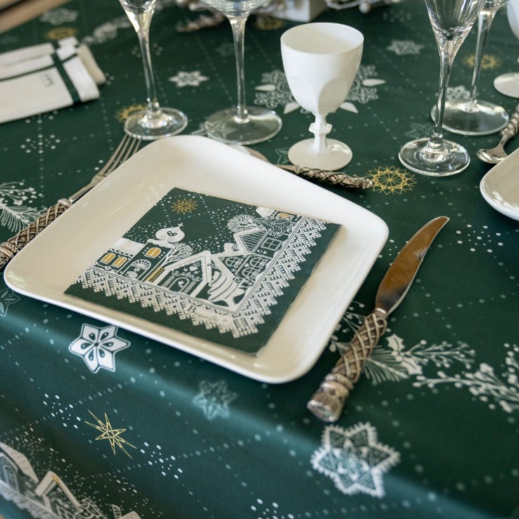 Die Tischdecke Nuit Étoilée bringt eine verträumte Atmosphäre auf Ihren Tisch für die Festtage. Ein unwiderstehlicher Mix aus edlen Farbtönen und grafischen Mustern erfindet die typischen Wintermotive auf diesem unverzichtbaren Modell unserer Kollektion neu.