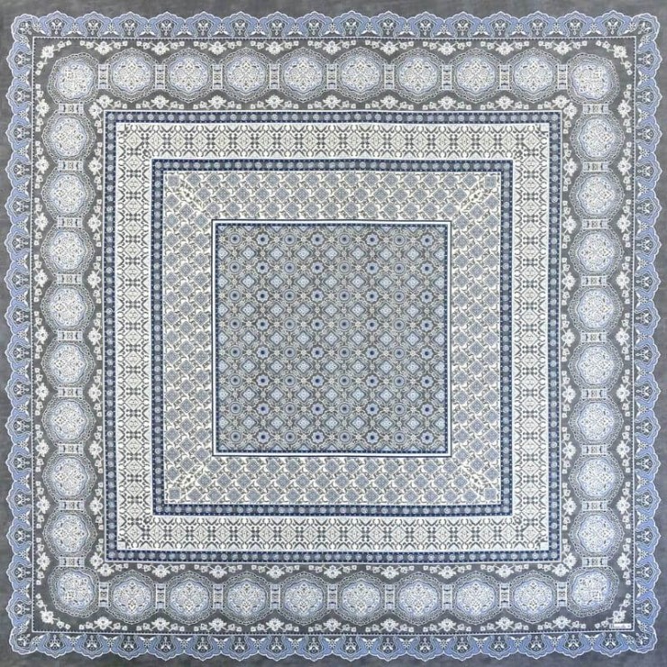 Das Tischdecke Trianon, eine sehr architektonische Komposition Die Tischdecke Trianon offenbart eine hübsche und sehr architektonische Komposition, die sich durch absinthische Arabesken und indigoblaue Akanthusblätter auf einem nüchternen und dezenten Hintergrund entfaltet. Diese luxuriöse Tischdecke kleidet Ihren Tisch mit Delikatesse. Dieses Produkt...