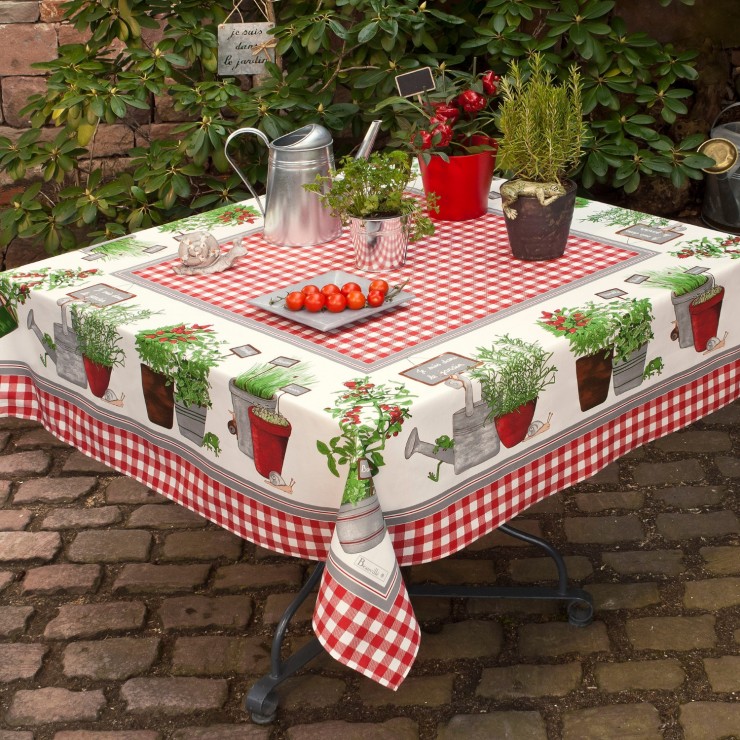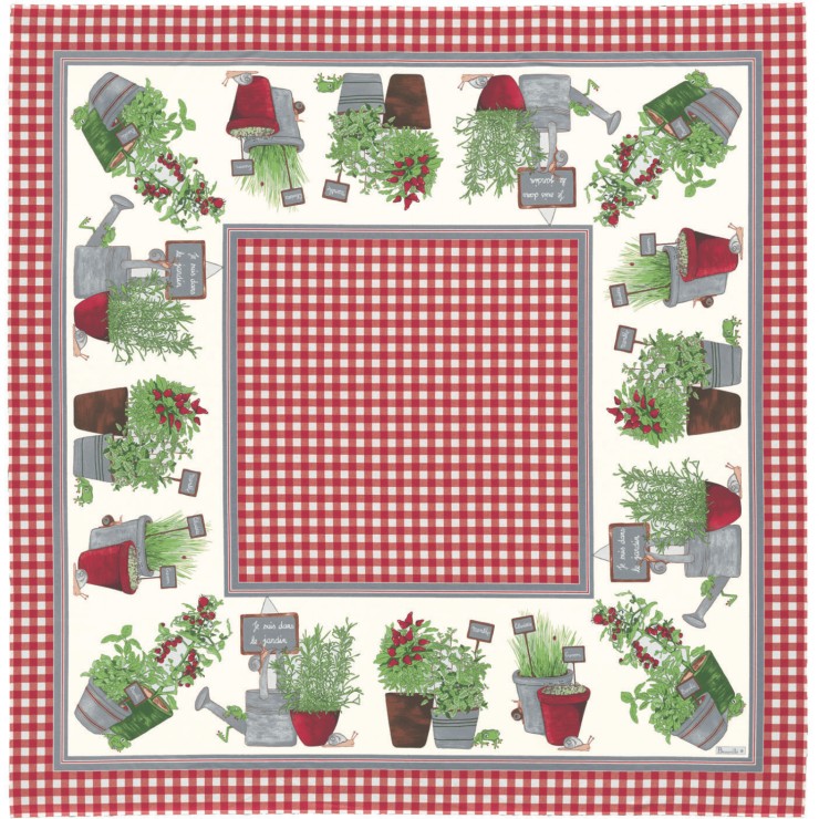 Die Beschichtete Tischdecke Potager, ein riesiger Garten zu Hause Im unteren Teil des Gartens zeigt ein reich bestückter Gemüsegarten seine ganze Artenvielfalt: Kräuter und Sprossen warten nur darauf, gepflückt zu werden, bevor man mit dem Kochen beginnt. Dieses Produkt wird 100% in Frankreich hergestellt