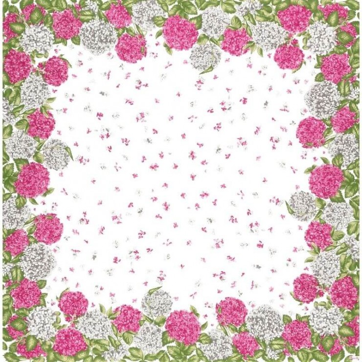 Ein Schwarm zarter Hortensias lädt sich mit dieser hübschen, schmutzabweisenden Tischdecke auf den Tisch ein. Diese Tischdecke ist ideal für die Sommersaison und zeigt ein herrliches Blumenbouquet in rosa und weißen Farbtönen.