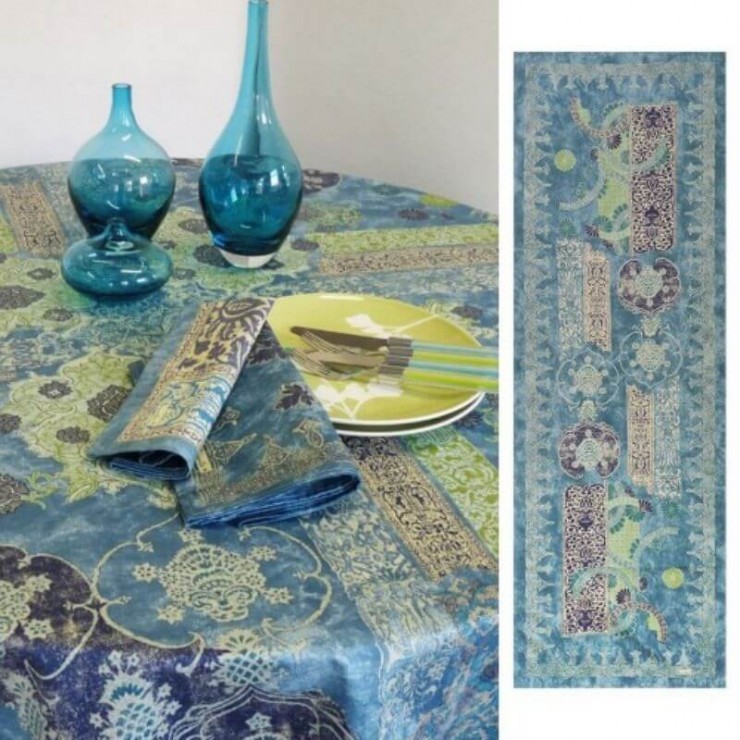 The Toscane runner, the sober and elegant must-have Inspired by Italy, the Toscane runner offers a timeless design enhanced by shades of blue. Sumptuous patterns enhanced by a soft midnight blue hue place this table runner in the category of must-haves for sober and elegant dinners. This product is 100% Made in France