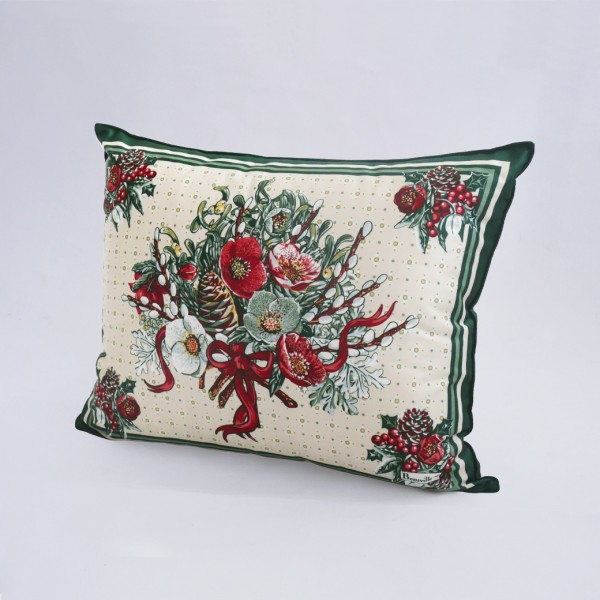 Dans un paysage enneigé, bercé par l’esprit des fêtes, entouré de cette symphonie de fleurs qui semblent figées dans le temps, cette housse de coussin est une invitation à célébrer la beauté de la saison hivernale.