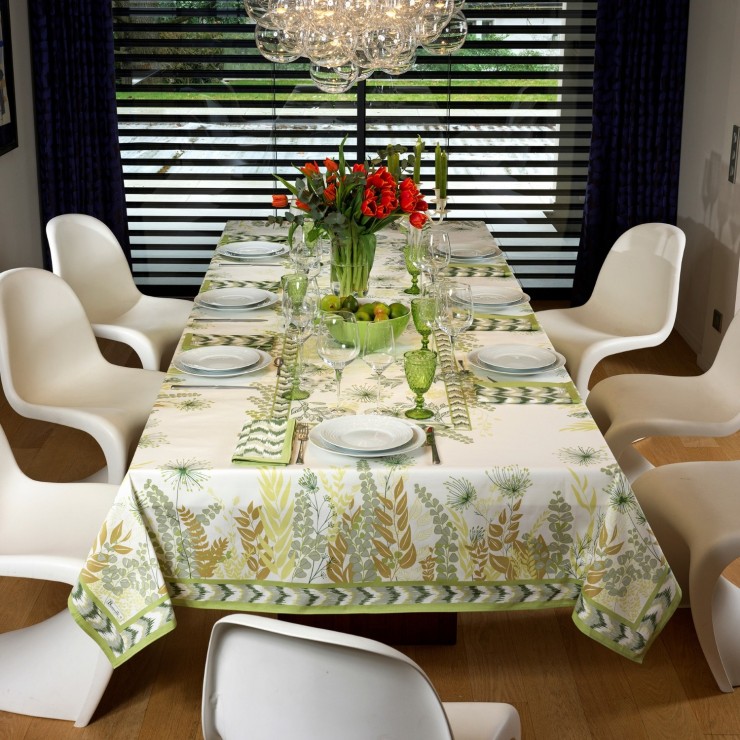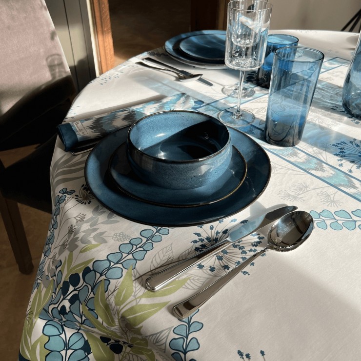 La nappe Agapanthes, entre fraîcheur et sérénité La nappe Agapanthes dévoile une nature luxuriante à table. Inspirée d’une flore et d’un feuillage abondants de détails, les motifs de cette jolie nappe de table apportent fraîcheur et sérénité à votre décoration d’intérieur. Ce produit est fabriqué à 100% en France