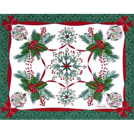 Incanto di Natale Celebra le feste con la tovaglia Réveillon. Il bianco puro e la delicata corona di Natale trasformano la tua tavola in un’espressione di eleganza, stile e magia firmata Beauvillé. Questo prodotto è realizzato al 100% in Francia - Origine Francia garantita