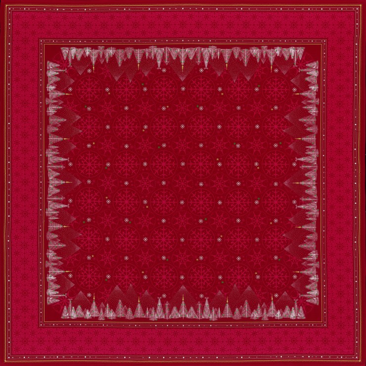 Tutta la magia della tovaglia Megève si interpreta sotto una neve che scende delicatamente nella notte. Decorata con dettagli invernali dolci ed eleganti, questa bellissima tovaglia natalizia rappresenta perfettamente il periodo delle feste, nelle sue diverse varianti di colore.