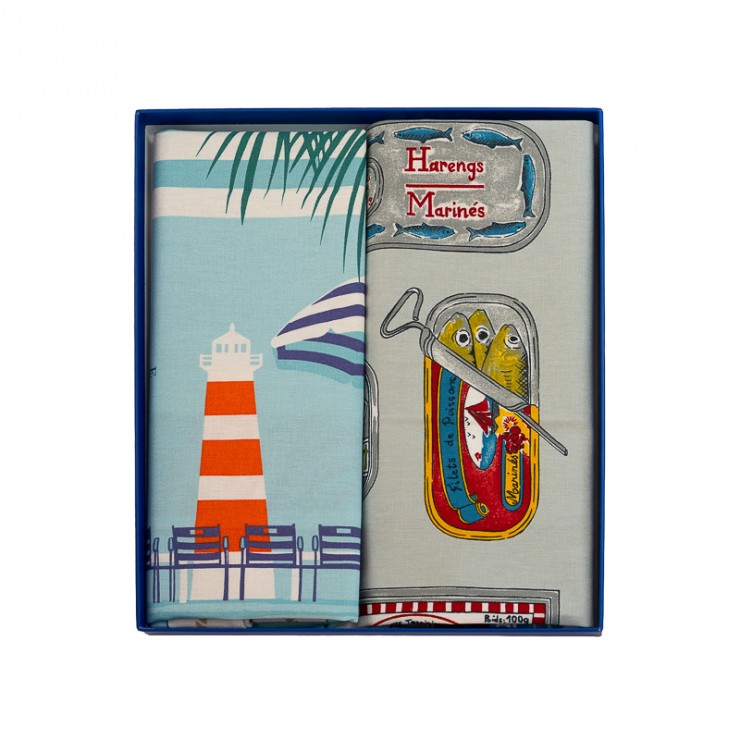 Come un’aria di vacanza Questo elegante cofanetto riunisce due canovacci imprescindibili: il modello Riviera, ispirato ai paesaggi marini, e il modello Teddy alla spiaggia. Perfetti per ravvivare la cucina o per un regalo, uniscono design e praticità per portare freschezza ogni giorno. Questo prodotto è realizzato al 100% in Francia – Origine France 100%...