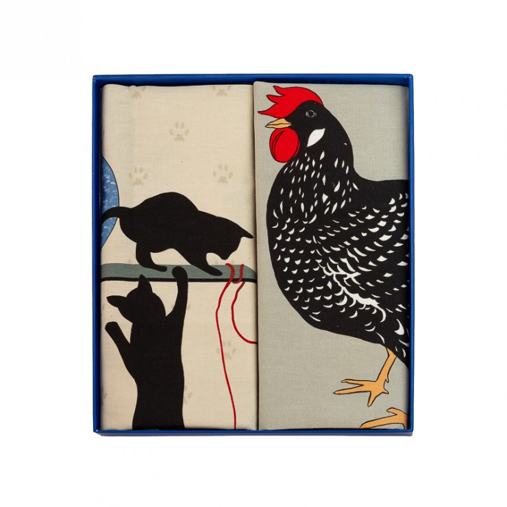 Composto dai canovacci Chat-Pitre Original e Picoti Poule, questo cofanetto Gatto e Gallina celebra i motivi animali con originalità. Tra scene di natura e dettagli giocosi, galline e gatti animano la vostra cucina con un tocco di umorismo e tenerezza.