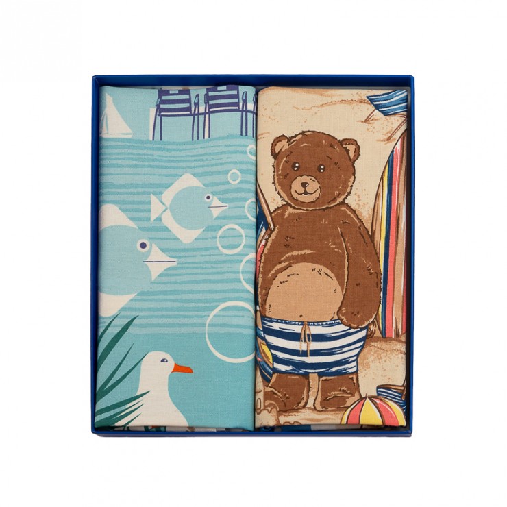 Questo elegante cofanetto riunisce due strofinacci indispensabili: il modello Riviera, con motivi ispirati ai paesaggi marini, e il modello Teddy in spiaggia. Perfetti per ravvivare la cucina o da regalare, questi strofinacci uniscono design e praticità per momenti di freschezza quotidiana.