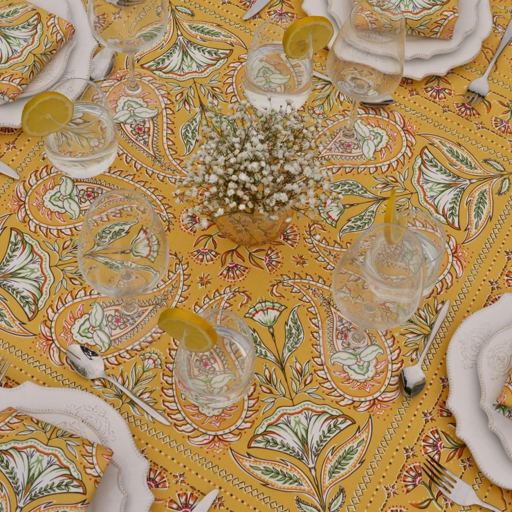 Tovaglia Darjeeling – Viaggio nel cuore dell’Oriente Ispirata all’Oriente, la tovaglia Darjeeling unisce eleganza esotica e raffinatezza. Un viaggio sensoriale che trasforma ogni tavola in pura bellezza. Questo prodotto è realizzato al 100% in Francia, con garanzia di origine Francia al 100%.