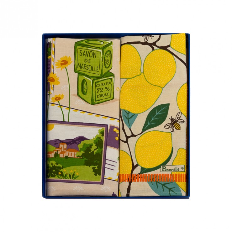 Tutti i meravigliosi prodotti della Provenza – lavanda, limoni, olio d’oliva – si ritrovano su questi canovacci che evocano la dolcezza del Sud della Francia. Colorati e realizzati con qualità superiore, sono il duo perfetto per accogliere la bella stagione con allegria.