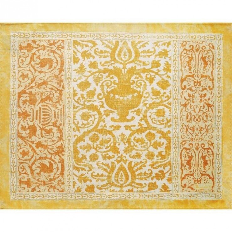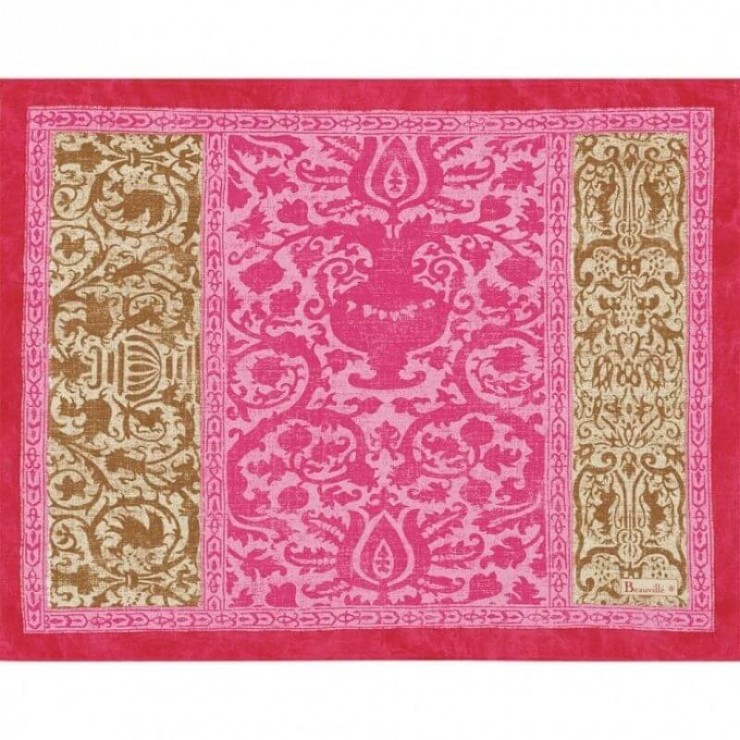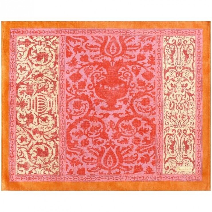 Il set tovaglietta Arné, raffinato e di ispirazione francese Trae origine da un documento di Napoleone III. Disponibile in cinque colori, mostra dettagli floreali ricchi e unici, frutto dell’arte dei nostri artigiani. Questo prodotto è realizzato al 100% in Francia. Garanzia di origine Francia 100%.